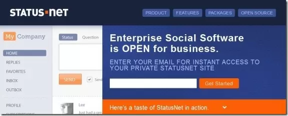 StatusNet is a micro blogging and online collaboration service for business professionals. It provides a somewhat similar functionality to Twitter, with more precise options for enterprise use. StatusNet was formerly known as Laconica. The aim of StatusNet is to provide enterprise users with the utility to gain inter-service and distributed communication via microblogging communities. StatusNet can be used by both common users and individuals, however you will require a corporate email address to sign up for a Free Trial. While StatusNet does not offer support for functions such as editing of PowerPoint files, it is more of a customized social media solution, instead of a web service for running clones of desktop applications.