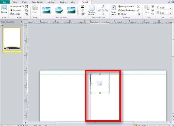 In the above image you can see that you are able to drag the Placeholder along the top margin. There is also a reddish guiding line to the side that shows the image’s alignment with the rest of the page. When you have a logo prepared for your letterhead template, simply click on the Placeholder and insert the logo from where you have it saved.