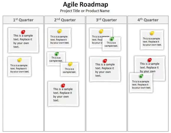 Agile Roadmap PowerPoint Template is a free editable template for Microsoft PowerPoint and project planners that you can download if you are using agile methodologies in your organization.