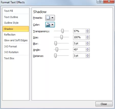 One comment on “How to change the text shadow properties in Microsoft PowerPoint 2010”