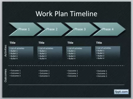 Here we will show you how to create a work plan timeline for projects in Microsoft PowerPoint. This is a basic timeline that you can create using shapes and arrows in PowerPoint. The layout will be very simple, we will just add some shapes for the top project phases and then add text boxes for each activity.