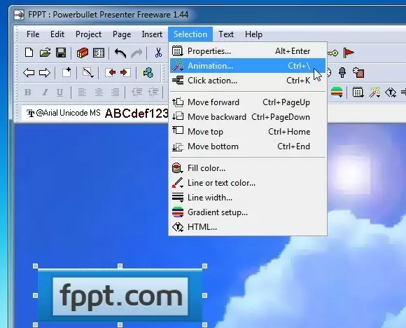 As Powerbuller Presenter provides various file outputs for your projects, you can even embed the animation in Microsoft PowerPoint (e.g. by embedding SWF to a PowerPoint slide using SlideDynamic Add-in), upload it to a website or use it for delivering a presentation directly via a Flash player. In this post we will show you how you can create Flash animations using Powerbuller Presenter. To get started, launch Powerbullet Presenter, click New, save your project to an output folder and begin adding content via the Insert menu. For demonstrative purposes, we will use two images to create an animation, including a background image and the FPPT Logo.
