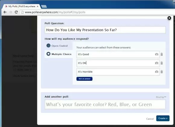 In the next step, you can create open ended or close ended questions and add multiple answers to gather audience opinion.