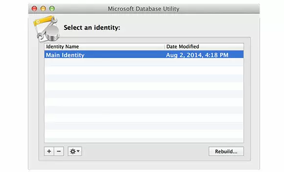 Here, you can select the current identity having troubles (normally it is Main Identity unless you use multiple identities in Microsoft Office for Mac or Outlook for Mac). Select the identity in troubles and then click Rebuild. Wait until the process is completed and then the error dialog box should disappear the next time you open PowerPoint for Mac.