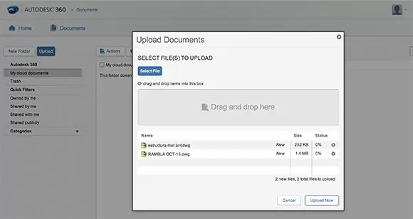 Sign up for free to Autodesk 360 and then open the Documents section to select and upload the .dwg files.