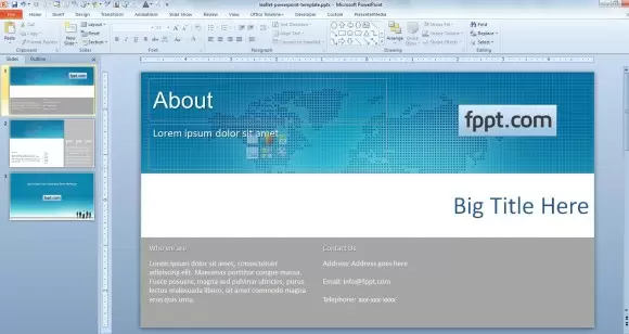 When you are ready, return back to the normal view and edit the template to fill the information you want to show in the leaflet PowerPoint template.