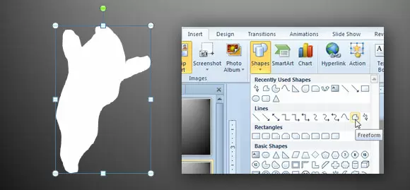 We can start creating your funny ghost image using the freeform shape drawing tool. Go to Insert -> Shapes -> Freeform.