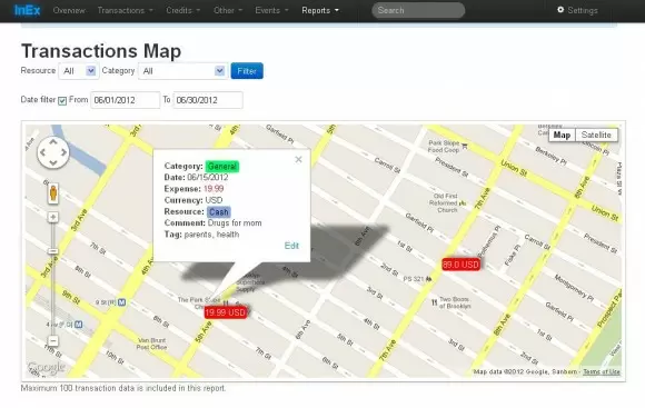 The software offers more than 30 table and chart reports for financial analysis and planning. The reporting tools will help you gain deeper insight into your personal finances, keep tabs on daily expenses, track monthly budgets, compare savings vs. spending, analyze category trends, check your account balance, verify your monthly turnover and much more. While viewing table reports, you can apply different filters to narrow down your search results, that can be further saved to your computer using the data export tool. Mobile users of InEx Finance may enable the built-in geolocation feature to track their expenses directly in Google Maps.