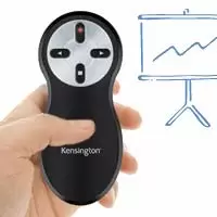 The Kensington Wireless Presenter with Laser Pointer features 2.4GHz wireless technology that delivers interference-free control of your pointer from up to 60 feet away, and a bright laser beam that ensures easy-to-see pointer visibility.