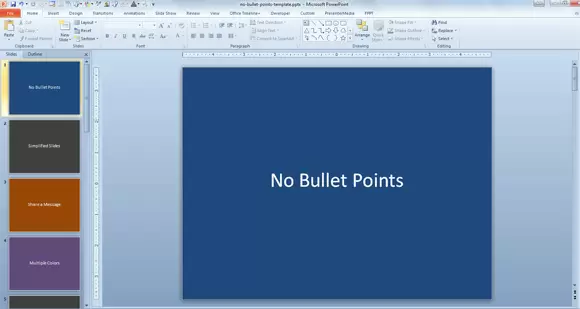 No Bullet Points Template for PowerPoint is a simple PowerPoint template that you can download if you want to make simplified presentations without bullet points. For those who are scared about the Death by PowerPoint or want to make modern presentations with a simplified but clearer message, then this template can be helpful.