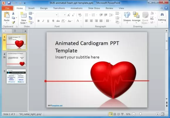 This animated template shows a cardiogram. You can easily edit the animated slides by simply adding your own text and images, which will play with the embedded animation when you present your slides. The template is ideal for medical presentations related to the heart, diet, nutrition and other healthcare related topics. You can download this template from the Animated PowerPoint Templates on Slide Hunter (see link given below).