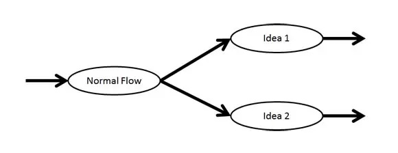First, we need to analyze what will be our presentation flow. For example, we may want to propose two different ideas, but depending on the feedback we get during the slide show we will choose what idea to show. Here we will use Sections to separate the different ideas, so if we analyze the presentation flow we will come to something like this: