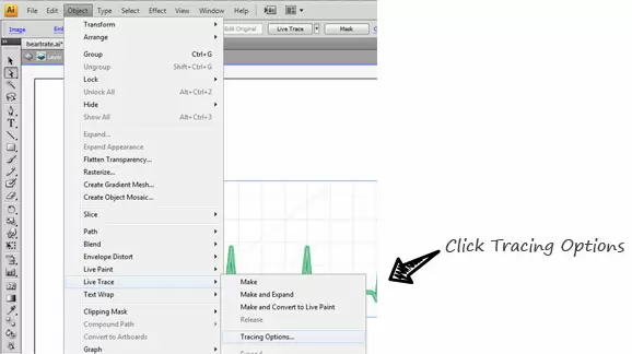 Now, we can open Illustrator and copy and paste the image in the canvas. Then, select the image Object then click Object menu -> Live Trace -> Tracing Options.