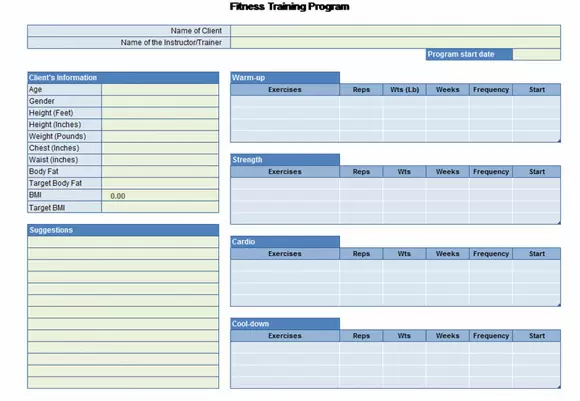 This is a free Workout Chart template that you can download for preparing your fitness training program in Excel and later and log your workouts with this Excel template. It features exercise categories and a separate tab to track weight and repetitions. You can download this free Excel template for your personal usage or to be used in a gym or fiteness center.