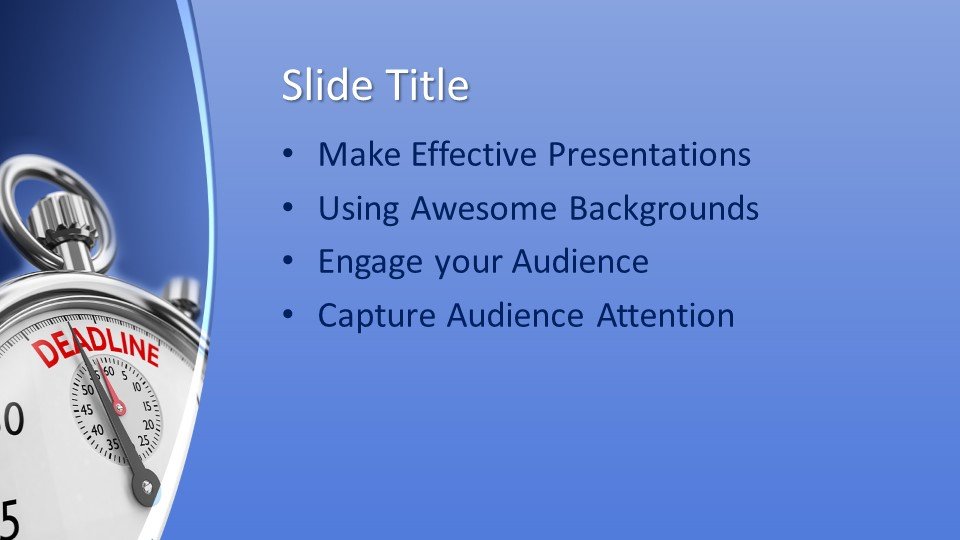 This free deadline template design with the image of the stopwatch can be downloaded free of cost and can be placed in the main slide design or in the theme of the presentation slides.